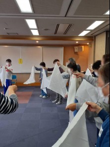 「協力しあう行動」という意義で、長机と椅子を部屋の隅に移動させる事から講習が始まりまし